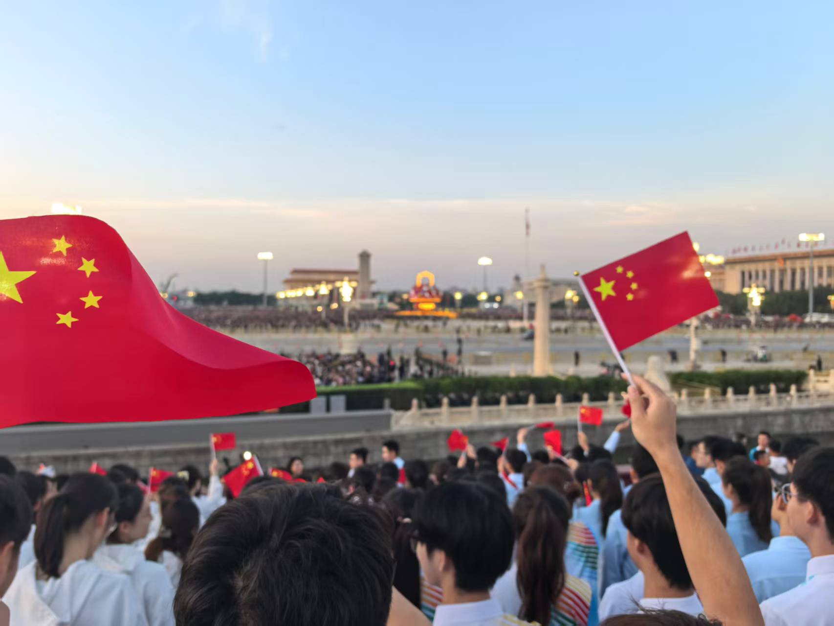 在学校党委的统一部署和精心组织下,学校北京校区、珠海校区的师生代表,纪念中国人民抗日战争暨世界反法西斯战争胜利80周年大会的广场合唱团、志愿服务团队的师生代表,学校“西部计划”研究生支教团代表,白鸽青年志愿者协会天安门广场项目的志愿者代表等,以丰沛的爱国热情和饱满的精神状态,与现场十余万名人民群众一起,在重要国家典礼的现场见证五星红旗冉冉升起的庄严时刻。