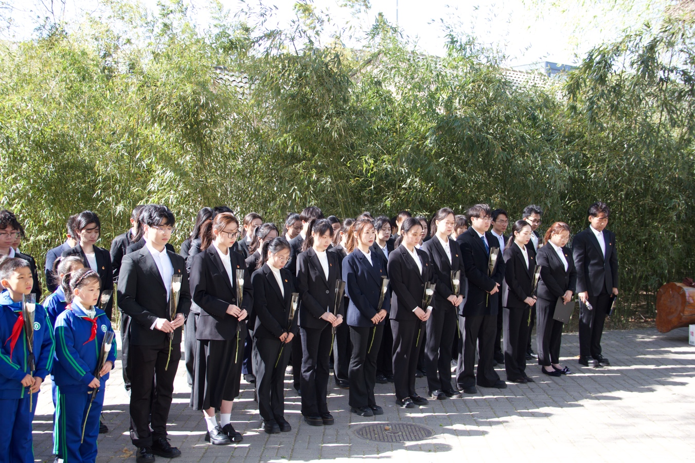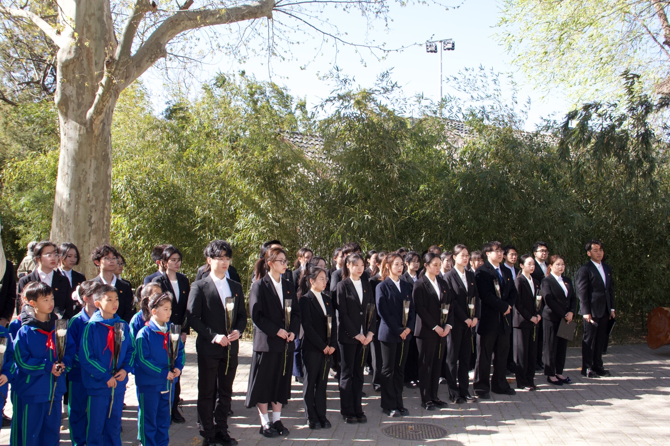 抚今追昔,致敬英魂。上午九时整,祭扫活动正式开始。师生整齐列队,手持鲜花,在“三·一八”殉难烈士纪念碑前肃立默哀,向所有为中国人民解放事业和共和国建设事业英勇献身的先烈致以最崇高的敬意和最深切的缅怀。哀思未竟,队伍移步“一二·九”纪念碑,主持人协会成员和实验小学少先队员共致献词,寄托追思。祭扫队伍在先师鲁迅像、陈垣校长像、周廷儒院士像、汪堃仁院士像、黄祖洽院士像、启功先生像、袁敦礼先生像前聆听宣讲、瞻仰雕像、敬献鲜花,追忆前辈先贤弘文励教的光辉历程,感悟“学为人师、行为世范”的校训精神、“爱国进步、诚信质朴、求真创新、为人师表”的优良传统和“治学修身,兼济天下”的育人理念。