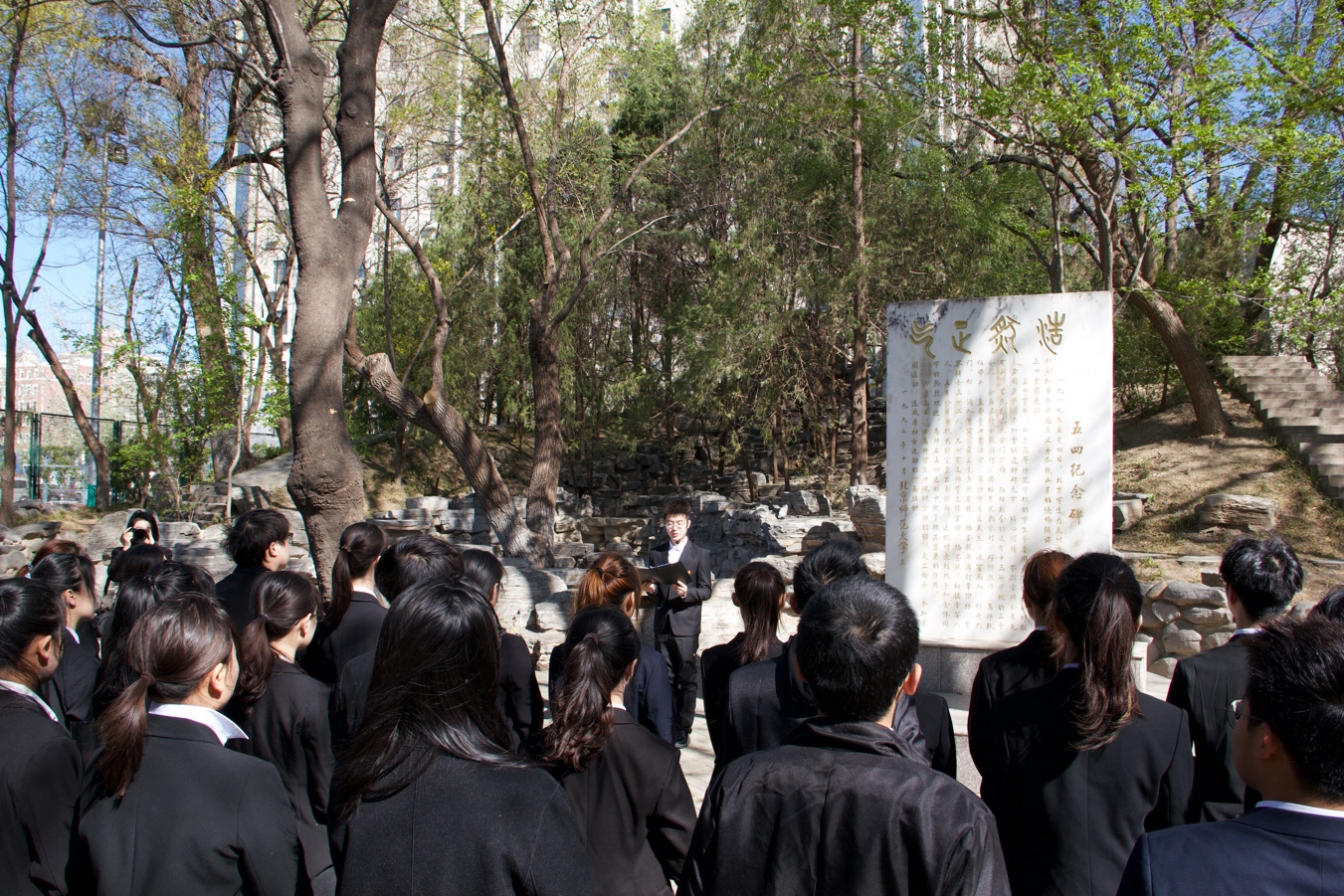 薪火相传,继往开来。 九时三十分,师生们齐聚“五四”纪念广场。师生共同向“五四”纪念碑敬献鲜花,青春讲师团现场讲授《缅怀先烈 担当使命 传承北师大红色基因》微团课,团员青年集体默哀并重温入团誓词,深刻理解“坚定不移跟党走,为党和人民奋斗”的初心使命,坚定厚植爱国情怀、传承英烈精神、汲取奋进力量的决心。