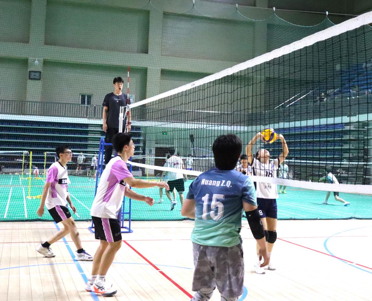 随着裁判一声哨响,决赛正式拉开帷幕。进入决赛的两支队伍分别是法学院队与数统联队,双方队员身着整齐队服,精神抖擞、斗志昂扬。赛场上,队员们各司其职、配合默契,发球精准有力、垫球稳健到位、扣球势如破竹,展现出北师大青年不服输、不放弃的拼搏劲头。